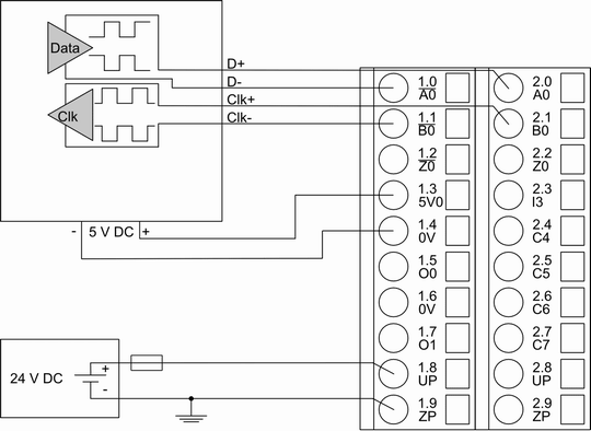 Connection of absolute encoders with SSI interface and differential RS-422 signal