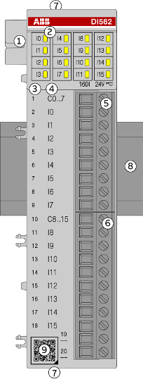 16 digital inputs 24 V DC / 24 V AC (I0 ... I15) in 2 groups