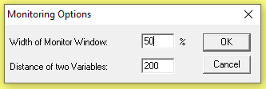 You can specify the Monitor Window Width and which Distance two variables should have in a line. An distance declaration of 1 corresponds, in this case, to a line height in the selected font.
