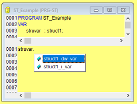 Example: Insert "struvar." -> the components of structure struct1 will be offered: