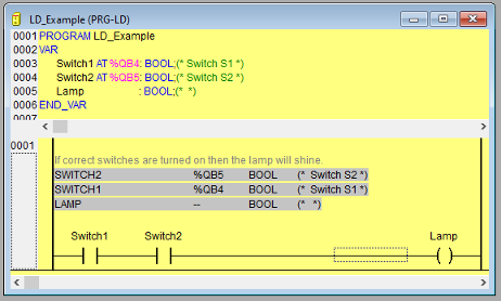 Comments per Contact (only for Ladder editor): If this option is activated, you can assign an individual comment to each contact or coil . In the edit field Lines for Variable Comment enter the number of lines which should be reserved and displayed for the comment. If this setting is done, a comment field will be displayed in the editor above each contact and coil where you can insert text.