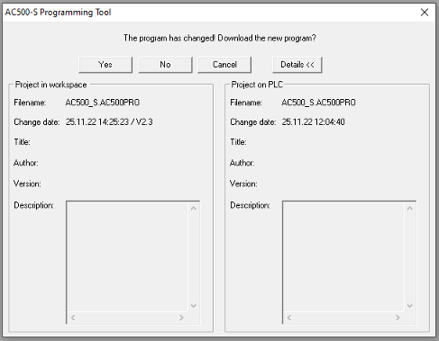 You can rename proj00000001_PLC1.ri again to proj00000001.ri. Thus at a login on PLC1 automatically the appropriate download information is available and Automation Builder will ask you whether you want to do an Online Change.