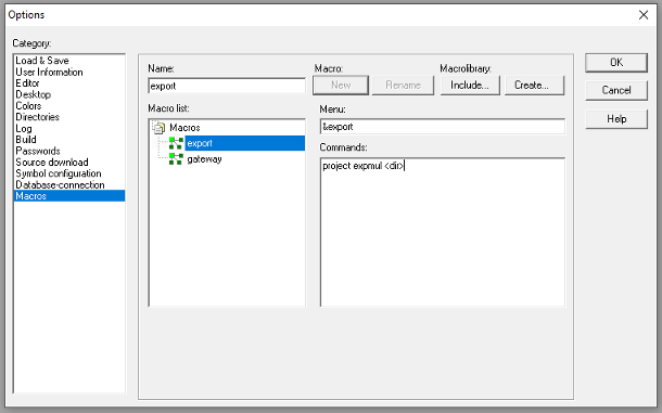 As soon as the dialog is closed by pressing the OK-button the actual description of all macros will be saved in the project.