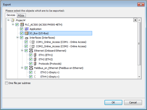 “One file per subtree”: If this option is activated, all objects belonging to the same subtree will be exported into the same export file, otherwise a separate file will be created for each particular object.